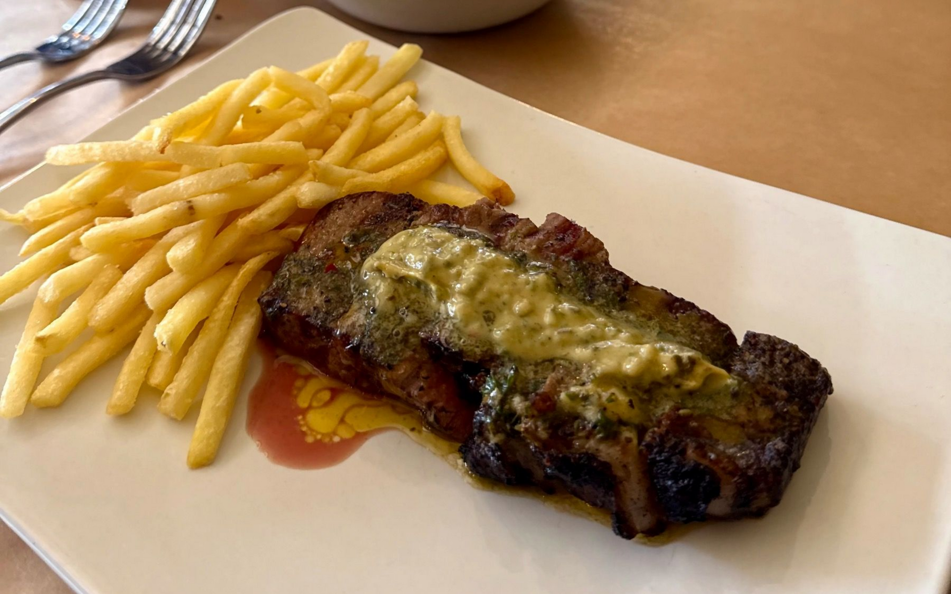Okay, now I should mention why we were actually here. On Mondays, they run a very tempting special. Two 250g sirloins topped with Cape de Paris butter, served with fries and a HQ salad… PLUS a top up of fries and sauce. I mean, come on!